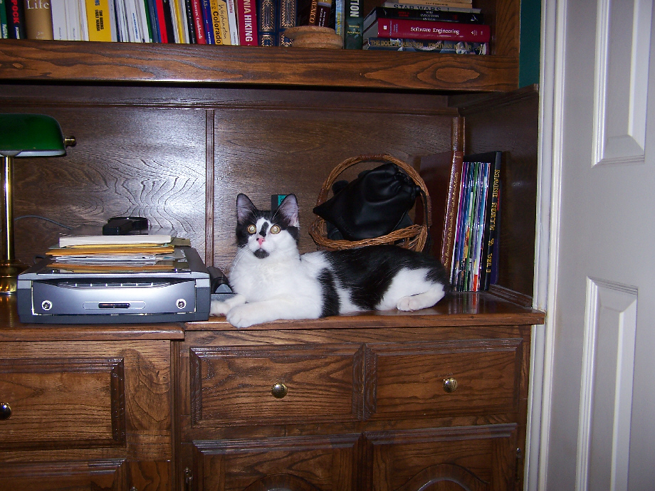 Just after taking these two pictures, I moved Lucky out of the way, although he did stay on the desk top.