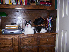 Today, Fred is experimenting with the camera, and I am experimenting with the new settings that I need to display these pictures properly on these album pages. Our test subjects are, as usual, Bobbie Lee and Lucky. Click on the thumbnails at the left to have a look at the cats today.