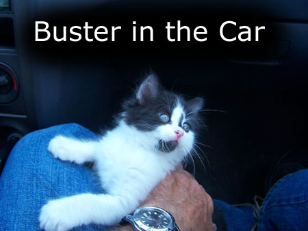 Buster spent the entire one-and-a-half day trip alternating between exploring around the car, sleeping and eating. The only time he meowed much was when we put him in the carrier when we had to get out of the car for gas or to eat. He was actually a good deal of fun to have in the car with us, and Fred took lots of pictures of him- on the way to Florida, on the way from Florida to Prudence's house in San Antonio, and on the way home from San Antonio. I have put the best of these pictures into a little slideshow for you.