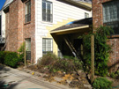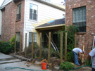 But the project had to be done, and since I had finally found a contractor whose work was very good, I decided to go ahead with it. When I talked with Jack Jayswal about the project, we got onto a discussion of the rest of the patio. As you have probably seen in earlier pictures, the patio has no roof above it- just a trellis-like affair supported by two massive beams that stretch across the area about six feet out from the house wall. When it rains, of course, water comes right through the slats of wood, and so you can't use the patio in inclement weather. Add to that the fact that the beams and smaller trellis pieces are very hard to maintain and you might understand why I was receptive to Jack's suggestion that we do something different.