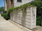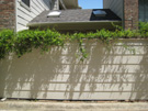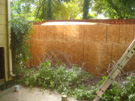 It is early on the morning of Wednesday, November 10, and I have come out to take a couple of final pictures of the old patio fence before the crew arrives. This view looks towards the northwest corner of the patio, and you can see how I've taken down the vines and laid them on the concrete floor of the patio. When Fred and I were pulling them down, we found that some pieces of the rotten fence literally came off in our hands- just another indication of how needed this new fence has been for some time.