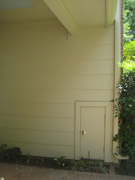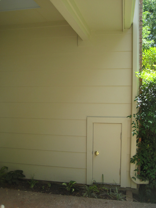 There is the new door that Jack had made to allow me access to the storage area under the back stairs. It locks, so that things I store in there (patio cushions, gardening stuff and the like) will be secure.