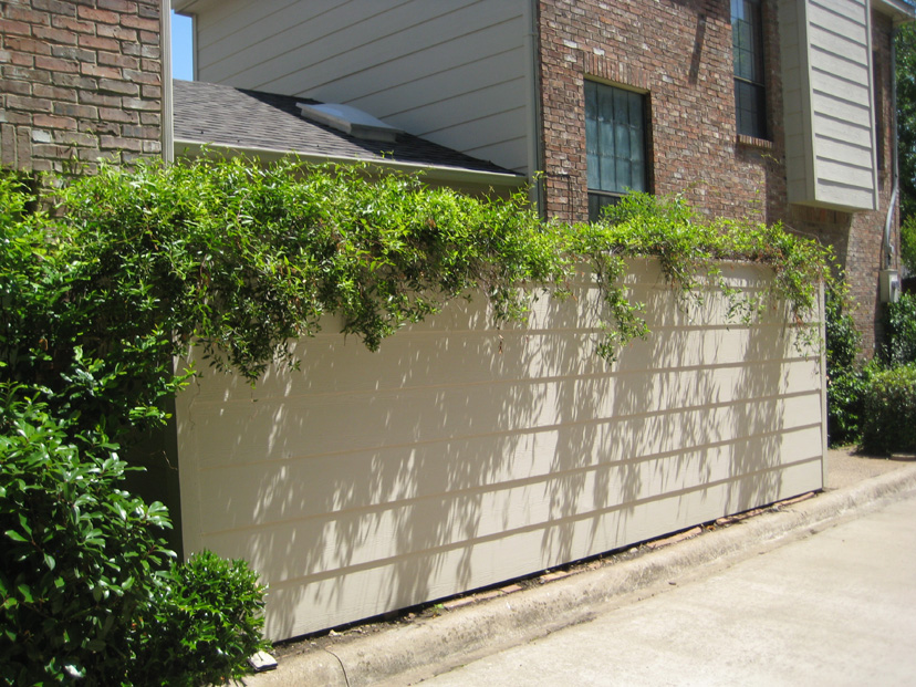 Finally, here is a view of the new patio wall looking from the front of the house towards the garage/family room. Some of the jasmine is already coming back, but I suspect it will be next spring before the rest of it fills in.