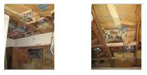 Now that the master bathroom renovation is coming to and end, the crew moved down to the kitchen to begin work there. The first thing they did was to remove the entire area of kitchen ceiling that had been patched in 2006. It was necessary to do this to clean up the problems caused by the leaking shower and also so that the rest of the ceiling could be smoothed. Today, I took a few pictures of the opened kitchen ceiling, one that you can see at left and a couple more that you can look at if you click on the thumbnails below: