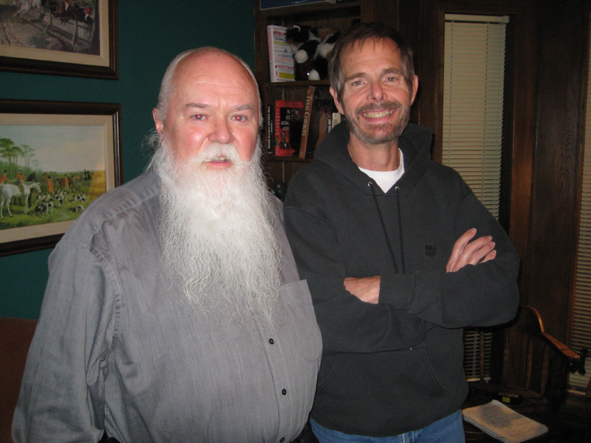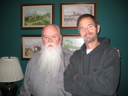 In any event, Ed called me a day or to ago to tell me that he would be coming through Dallas on the bus on his way to live in Mexico for a year, staying with someone he'd met. He had plans to learn the language, get a job and consume new ideas and experiences. On the morning he arrived, Fred and I drove down to the bus station and picked him up. We spent the day together, having lunch and dinner and showing him as much of Dallas as we could. The visit was all too brief; there is so much to Ed that it is hard to absorb it all in such a short time. Just before we left to return him to the station to catch his bus to Mexico, Fred took one more picture of Ed and I in my study.