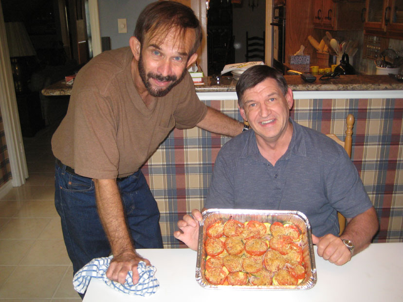 Finally, we had a visit from Denny Milne shortly after Fred returned to my house. Denny works for the American Heart Association, and he brought Fred a number of cookbooks that they distribute as well as a lot of useful information for him to peruse during his recovery period. And, in a burst of helpfulness, he also cooked one of the recipes- a vegetable casserole- and brought it by for us to eat. It was quite good. I might note that some folks have suggested that bypass patients ought to go totally vegetarian, but after conferring with a couple of nutritionists and Fred's doctors, the consensus is that this is not necessary. Although, they all pointed out, the standard American diet ought to be modified after such surgery to include less fried food and fat, and more vegetables and fruits. Actually, one doesn't need to be a bypass patient to heed this advice; after all, the standard American diet is the primary reason that standard Americans are so non-standard in their weight and physical conditioning! In any event, ever since the surgery, both Fred and I have made excellent strides in making our diet more heart-friendly.