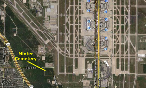 I have been to the Minter Cemetery on two sad occasions. Located on the west side of DFW airport, it is just west of the boundary road, actually within the property now assigned to that facility. But it has been there a long time, and since the airport does not plan any construction there, it will probably remain there.