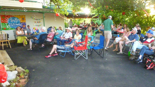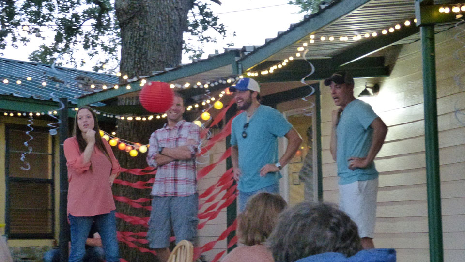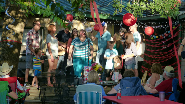 Part of the festivities during the evening was a gathering of the Crawford clan up on the deck/stage, where Debbie gave her thanks to all of us for being there for her. First, Debbie had all her kids come up and join her, and Fred got a couple of good pictures: