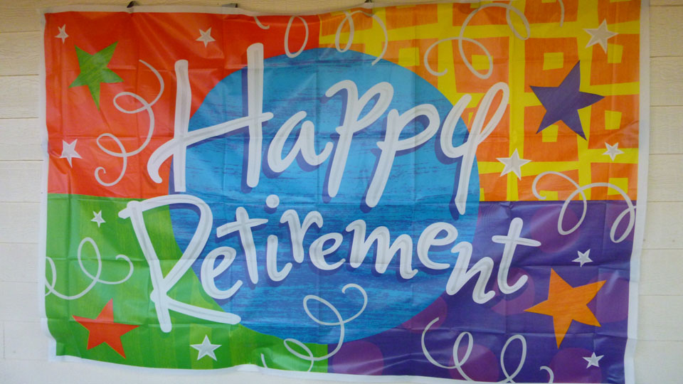 The party was to celebrate Debbie Crawford's retirement from the school system, where she has, for many years, been a teacher. When we first came in, I made a movie, looking around the outside area. You can watch it with the player below, left. To the right of the player is a picture of the contratulatory message that had been put on the wall of the house, right next to the large "retirement" banner- humorous, as you can see: