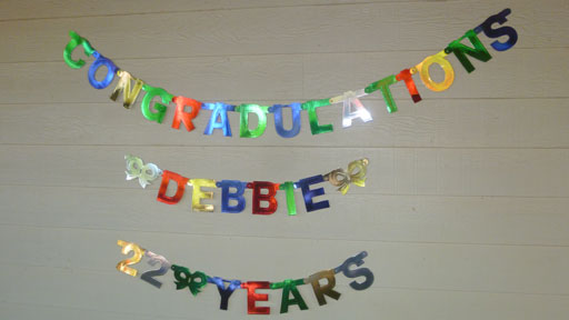 Debbie's husband, David, didn't get left out of the on-stage festivities, and there were a couple of times that he took the microphone to recognize his wife's working-life achievements. I made a movie of one of his sessions, and you can use the player at left to have a look at it.