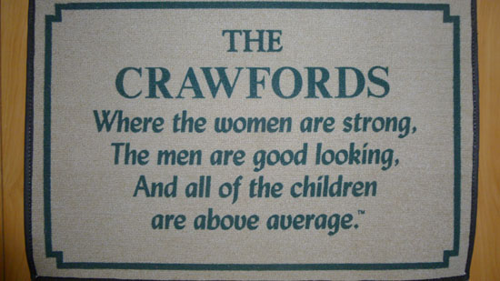 It is a bit hard to explain the layout of the Crawford's house, but I will give it a shot. The Crawford's house is basically in the shape of a numeral "7". The top part of the numeral is oriented along their street (which runs north-south), and the other part of the house is actually angled a bit extending to the northwest. The house is two-story in both sections. Mostly, the extension to the northwest is a big activity room downstairs (which is where they set up the buffet tables for dinner). The Crawfords have a big family- five boys and a girl if I remember correctly- so there must be lots of bedrooms upstairs, and I guess the activity room got a workout as the kids were growing up.