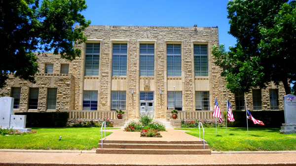 Leaving that building for a while, let's move over to the town of Comanche. In 1859, after the move from Cora to Comanche, the county conducted its business in a one-room building made of pickets- logs placed side by side vertically in a trench. This type of building, used for forts and other utilitarian structures across the South from 1770 to 1860, was not intended to last, and its destruction by fire on March 20, 1862, was noted without comment in the minutes of the Comanche County Court. The county rented a temporary building while it made plans to build a two-story structure fifty feet square “of hewn stone and good plank.”
