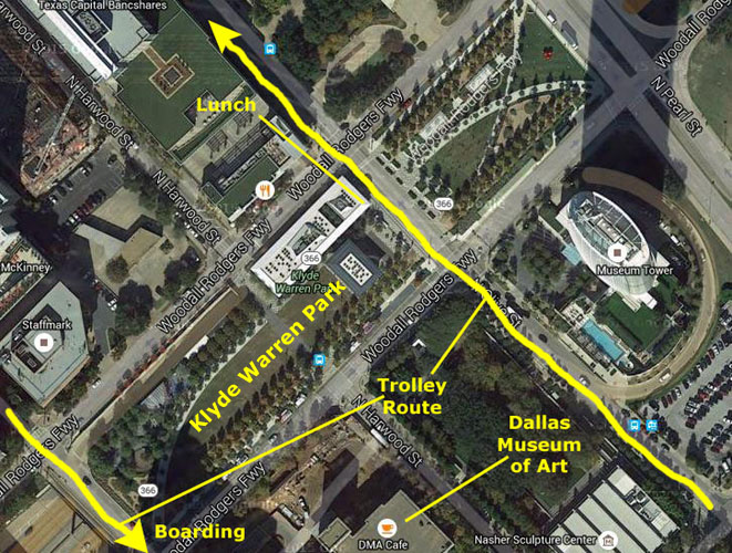 Today, Fred and I joined Steve, Mario and two friends of theirs, Eli and Kelly, for an outing downtown to Klyde Warren Park and the Dallas Museum of Art. We are meeting Eli and Kelly for the first time today.