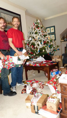 As has been usual in years past, Fred visits his Mom in DeLeon on the 23rd and 24th, leaving there to stop in Cleburne to do Christmas Eve with his stepmother Nina and his half-brother Troy and his family. He returned here late on Christmas Eve, and on Christmas Day he and I gathered around the tree to unwrap the gifts we'd gotten for each other any any others we'd been given.