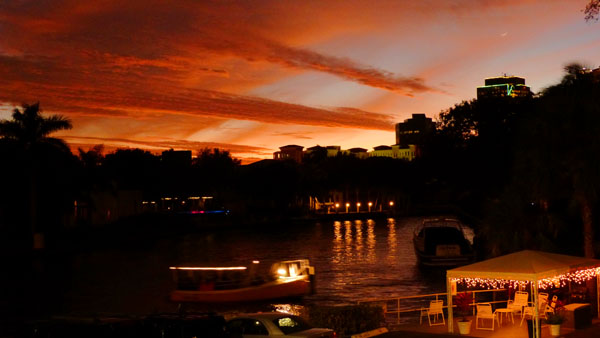 In that picture, you can see that Fred caught a Water Taxi just leaving the stop next door to continue down the river; the stop is just on the other side of the property fence by our gazebo by the river at the corner of the parking lot.