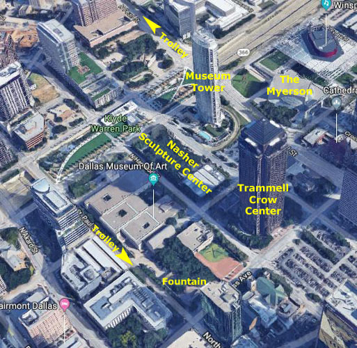 The Museum Tower's glass has reflected an undesirable glare into the nearby Nasher Sculpture Center, whose architect Renzo Piano had specifically designed its roof to direct appropriate indirect sunlight into the galleries, based on the arc of the sun across the sky. Artist James Turrell considers his work Tending (Blue) to be effectively destroyed by the glare, and the museum has closed the interior of the sculpture to the public at his request. Peter Walker, the landscape architect who designed the Nasher's sculpture garden, has characterized the glare as "an attack on the garden and on the building and on the art." As of 2015, Museum Tower's owners had decided they are not responsible for the glare created by the tower, although there are ongoing efforts to find ways to minimize the glare without destroying the views from the residences. Stay tuned.