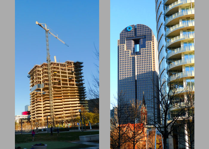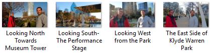 This afternoon, we are just going to walk around the park area to show it to Guy and take some pictures of the downtown Dallas skyline. We began in the southwest corner of Klyde Warren Park, generally looking northeast towards the Dallas Arts District and the skyscrapers in and near it.