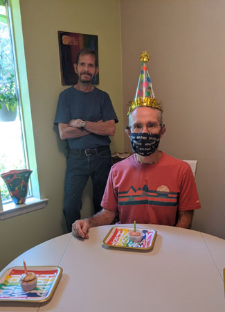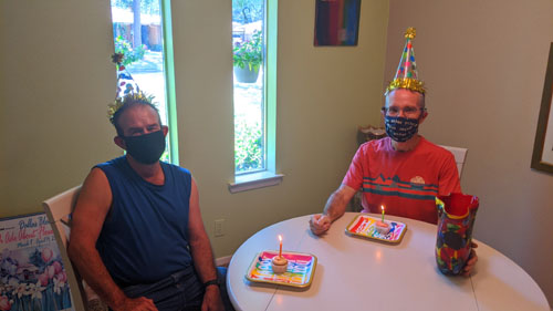 Well, it's August, about five months from the date we returned from Florida, and we have been hardly anywhere. Now, Fred's birthday has rolled around, and in a couple of days it will be Mario's birth that will be celebrated. Of course we are celebrating Fred's at home, but Fred, Mario, Steve, and I have decided to try for some normalcy by masking up and celebrating Mario's birthday at their house in Hurst. We've been careful, and Mario and Steve probably even more so, as Steve works in healthcare, so we think such risk as there might be is minimal.