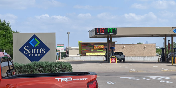 But in recent years, fracking has increased the supply dramatically, and we sometimes saw it dip below two dollars. And then this year the pandemic hit, and demand fell off a cliff. When we left Florida in March, we saw it below $1.50 on the way home, and by early April, I was able to record a record- $1.17/gallon- a price I'd not remembered seeing for perhaps twenty years or more. So I just had to take this picture (and stop to fill up).