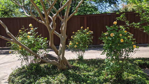 Today, I've decided to record the show that the roses on the island behind the garage are putting on.