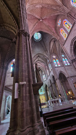 In the pictures at left you can see both of these long aisles on either side of the nave. At the transverse intersection on both sides there are some benches/pews and each faces one of the larger chapels (except for the northwest side where there is an exit out to the plaza.