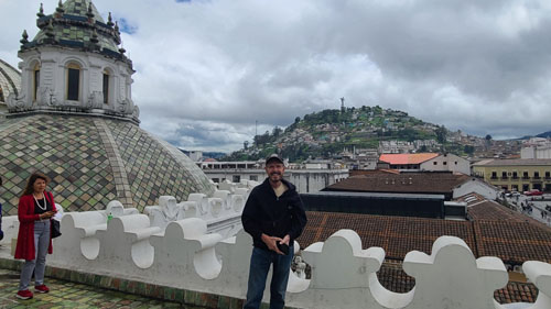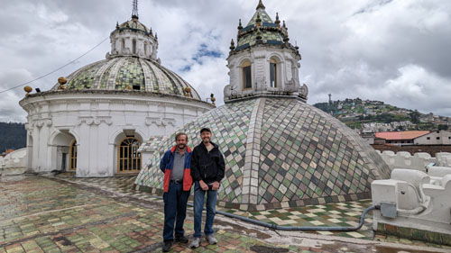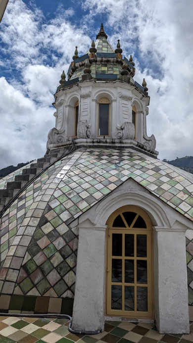 Being up here on the roof, and taking in the pretty amazing views out over the old city of Quito was really neat, but I was looking forward to getting into the dome above the transcept. So our guide took us to the dome with the entry doors and we headed inside.