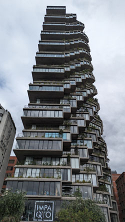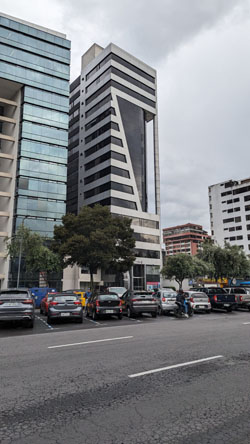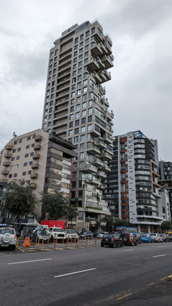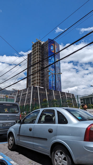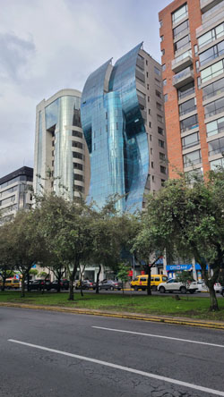 The structure is pretty interesting, almost as if the architect was on a flight of fancy, or wanted to indulge his whimsey. We have seen other highrises similar to this one elsewhere in Quito, which makes me wonder if the same architect was involved.