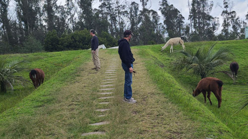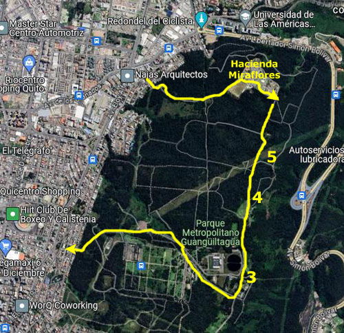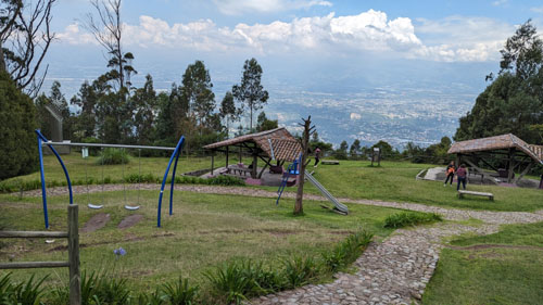 We did something different this time, based on our experience a week ago with Jeffie. Instead of having the Uber driver take us to the main park entrance, leaving us a long walk uphill to search for the llamas and get to the ridgeline trail and the overlooks, we had him take us to Hacienda Miraflores (locally known as Comuna Miraflores), which is a community that is actually inside the northern end of the park.