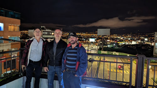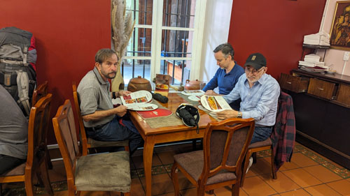 The second set of visitors arrived late on February 12th- Brad and his friend Jason. Their trip down was not without incident. When they got off their DFW-MIA flight, someone took Brad's carryon luggage by mistake. Also, their flight was late, and so American had to put them up in MIA the night of the 11th and book them into Quito on the 12th. As it turned out, the person who got Brad's luggage had brought it back to the airport late that evening, but it didn't catch up with Brad until the 13th in Quito- after we'd taken him shopping to replace some of the essentials he was missing.