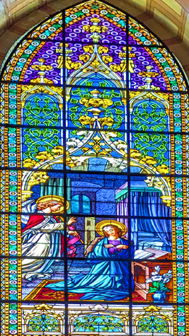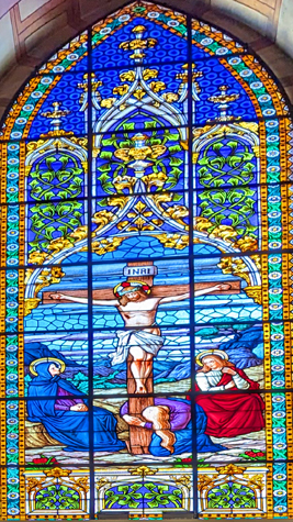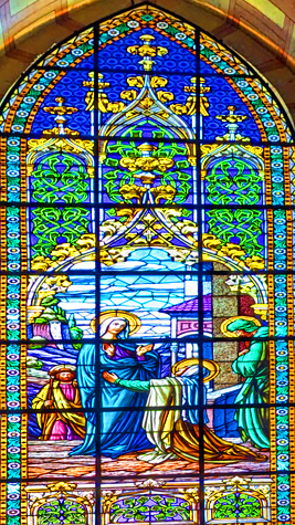 Today, the weather was much better outside, and I think that the bright sun showed off the stained glass to better effect than when we were here with Jeffie. So on this page, I want to concentrate on the stained glass. I have taken another picture in each chapel, but this time just of the stained glass, and I have put those pictures of the beautiful glass works in a slideshow. That slideshow is at right.