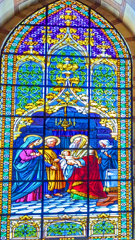 To view the slideshow, just click on the image at right and I will open the slideshow of stained-glass pictures in a new window. In the slideshow, you can use the little arrows in the lower corners of each image to move from one to the next (just put your mouse or point in the lower corner of the image and the arrow will show up), and the index numbers in the upper left of each image will tell you where you are in the series. When you are finished looking at the pictures, just close the popup window.