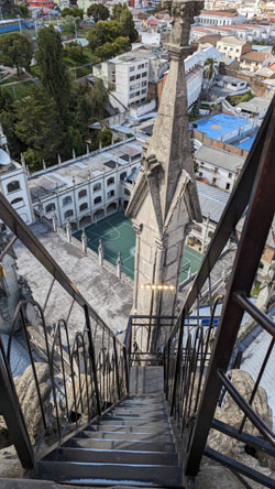 After a while, we were ready to head back down to rejoin Fred and Brad, and I took some pictures of the stairs and on the stairs as we descended:
