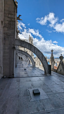 As I may have mentioned, Fred and I paid a bit extra to have a guided tour not only of the nave, which was very interesting, but also some of the other chapels. But the main attraction of the tour was that with a guide you could get up into the top of the dome and also outside onto the roof of the church. We followed our guide who took us on a short elevator ride and then up some stairs to come out on the roof of the church, and the first thing we did was to walk around.