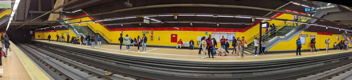 Now, we are going to head to the east corner of the square (near where the yellow taxi is in the right side of the panorama, for there we will find the entrance to the Quito Metro, which we want to ride on. The Quito Metro is the underground underground railway network that serves the city; it was inaugurated on December 21, 2022, although several technical and operational problems delayed the debut of its commercial transportation operations until December 1, 2023- just two months ago!