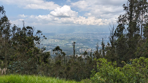 There is a highway that winds around the south end of the mountains that separate Quito from Cumbaya; we didn't use the tunnel as this would take us into central Quito, and the old city is at the south end of the valley. So we had to wind our way through Cumbaya to pick up this highway.