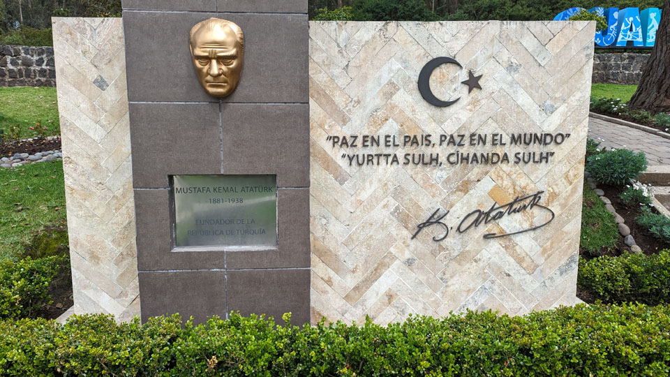 When we got to the park entrance, we found a little park-like sitting area which, oddly enough, contained a plaque given to Ecuador by the nation of Turkey. Here are the two good pictures we took here at the park entrance: