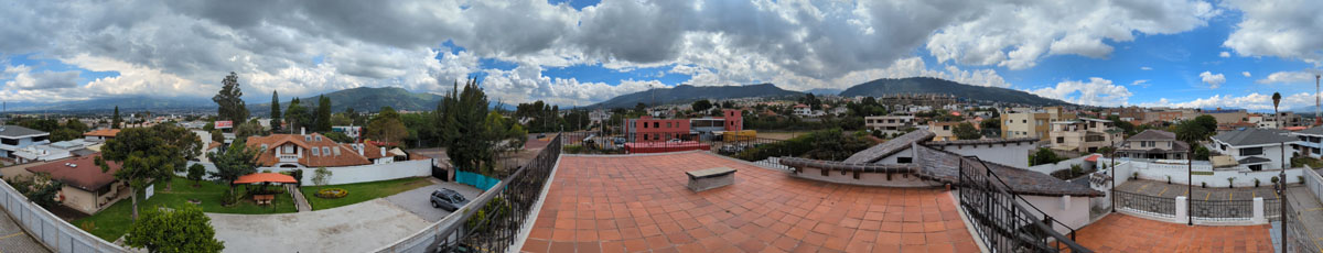 Here is another panoramic view. In this view, the center of the picture, looking towards the Virgin of El Panecillo is almost directly southwest. So the left of the picture is basically south and the right side is basically west. The panorama spans a bit more than that, but the approximation is OK.