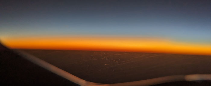 The flight to Dallas left within a few minutes of its scheduled time, and the flight was smooth and uneventful. I did get a really nice sunset picture about an hour out of Miami: