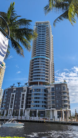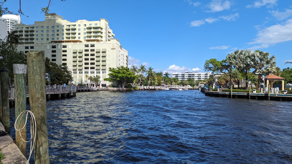 Just after we passed the Icon Las Olas, we took this picture looking downriver past the Riverside Hotel. Riverview Gardens is downriver, around that bend you can see in the background.