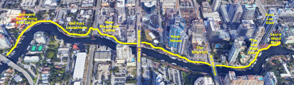 The Riverwalk is Fort Lauderdale's penultimate tourist attraction, second only to the beach itself. It extends westward from the new Tunnel Top Park to Sailboat Bend and the esplanade in front of the Science Museum and Performing Arts Center, ending by the Symphony Condominiums.