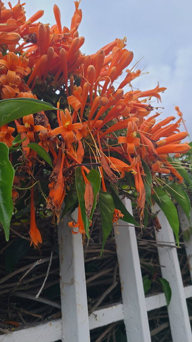 It has also grown out over the patio cover, and drops leaves on top of the cover. These wash down into the gutter, with the result that the gutter gets a lot of leaves in it. These decay and if we are gone a long time, the decomposed material can clog the downspout.