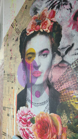 Fred took a couple of pictures here. The picture at the far left shows the building where their offices are located. There are other firms and shops- all with a creative bent- located in this building. The picture at the near left is a mural on the side of another building in the complex, and the woman depicted should be familiar to you.