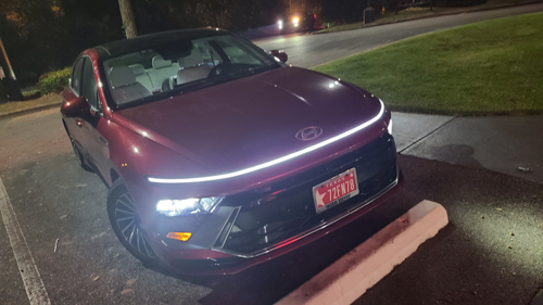 At the Tallahassee hotel, I went in to do the paperwork for our room, got our key, and drove over to park near the room but as far from any other car as possible. Fred wanted to get a couple of pictures of his car at night, and so took one while I was in the lobby and another after we parked by the room: