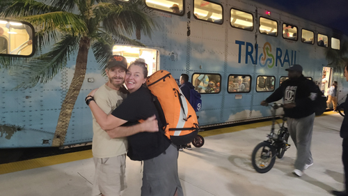 She did that, and when she reached Miami, we told her how to find the Tri-Rail station at Miami International Airport. The Tri-Rail- a commuter railroad in South Florida- comes up to its station out Broward Boulevard in Fort Lauderdale, which is infinitely closer and easier to get in and out of than is the Miami Airport. (Going to Miami to pick someone up and bring them back to Fort Lauderdale takes more than 90 minutes at the best of times.)
