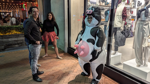 On Halloween night, we could have gone over to Wilton Manors for the Halloween Street Party, but we've done that before and getting around the area is extremely difficult, with lots of streets blocked off and parking- even some distance away- at a premium. So we contented ourselves with walking along Las Olas Boulevard from the Himmarshee Canal on the east to the intersection of Las Olas and Third Avenue on the west. We took a number of candid pictures during the walk.