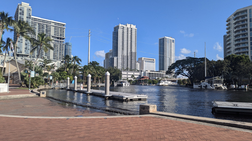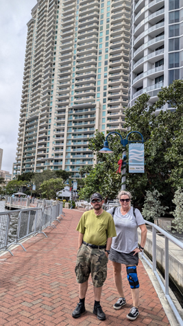 (Picture at left) On Wednesday, Jeffie had a chance to meet Ron Drew, and we also went for a walk along the Riverwalk. This photo was taken on the portion of the Riverwalk at its eastern end where it is cantilevered out over the New River. The Stranahan House and Icon Las Olas are at right, and the Las Olas Grand is in the background.