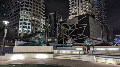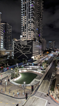 One evening, we had dinner with Ron and Jay at the Cheesecake Factory. When we have dinner with them there, they park in the Riverside Hotel garage, and when we were done with supper, we accompanied the two of them up to their car. My ulterior motive was to take some pictures of the new Tunnel Top Park from a high vantage point.
