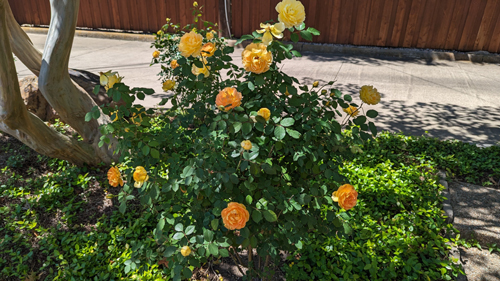 As usual, the roses along the side of the garage, and the yellow roses on the island, are doing very well, and putting on quite a show;