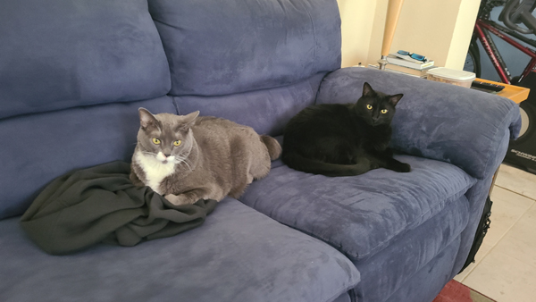 This is about the tenth or fifteenth time that Bob and Cole have accompanied us to Florida. Bringing two cats lessens the load on Lynne, our cat sitter, and we enjoy having them around here in Florida.