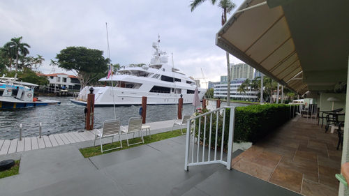 In the picture at left, I am standing in Laura Ward Park and the picture shows where the walkway begins that goes behind the Stranahan House and the Icon Las Olas, and is actually out over the water of the New River.